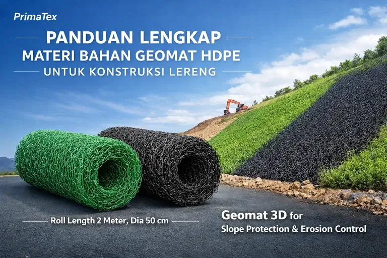 Di PT. Primatex Geokarya Abadi (PrimaTex), kami berkomitmen untuk menyediakan produk Geomat dengan materi HDPE kualitas terbaik, memastikan bahwa setiap proyek infrastruktur di Indonesia memiliki perlindungan permukaan yang tangguh, tahan lama, dan ramah lingkungan. Dengan memilih material yang tepat, kita tidak hanya membangun untuk hari ini, tetapi juga menjaga stabilitas alam untuk masa depan.